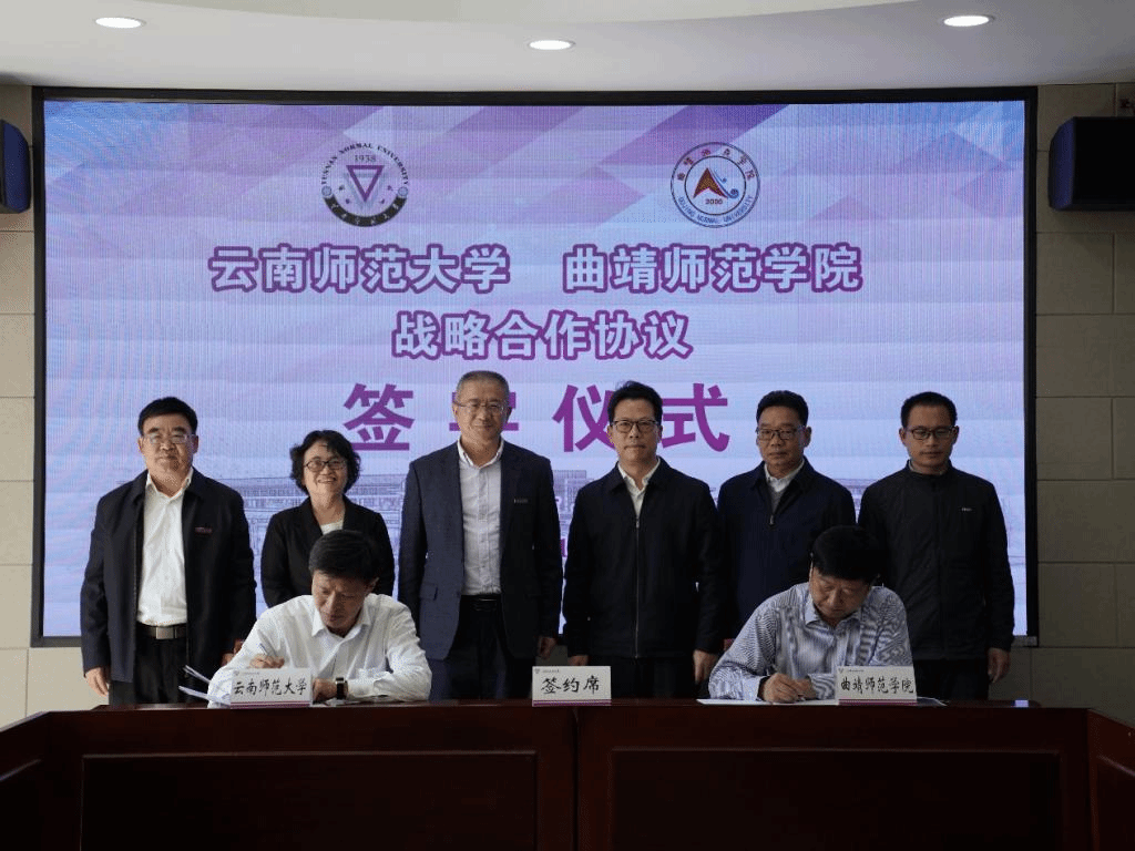 10月14日下午,永利官网与曲靖师范学院战略合作协议签字仪式在呈贡校区举行。曲靖师范学院党委书记王贵义,校长全洪涛,党委副书记陆选荣,副校长郭丽红、成飞翔;永利官网党委书记张祖武,校长胡金明,副校长武友德,以及两校相关职能部门负责人参加活动。