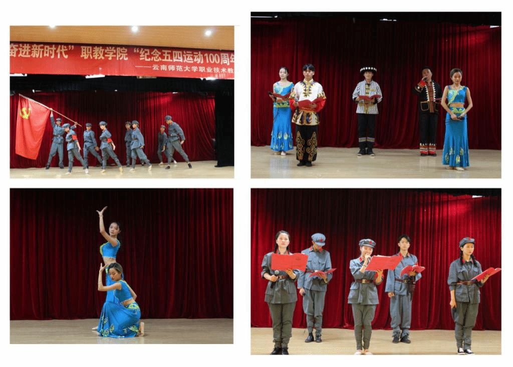 一首首激情澎湃的诗,一曲曲富含云南特色的歌,一幕幕感人肺腑的历史场景,音乐、朗诵、表演巧妙结合,沟通过往与今朝,展现了职业技术教育学院学子的青春风采。