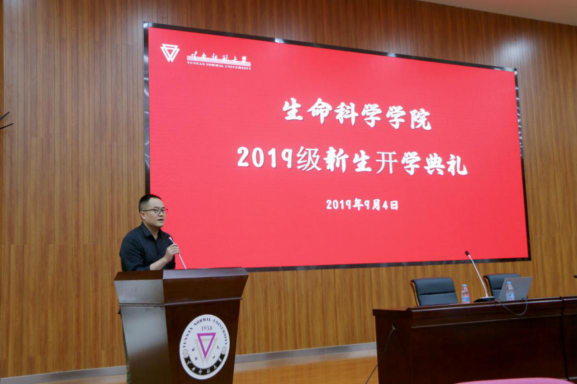 2019年9月4日下午,生命科学学院在yL23411永利官网登录呈贡主校区汇学2栋101报告厅举行了2019级新生开学典礼。生命科学学院党委书记周滔、党委副书记唐明靖、副院长金朝光、副院长许波、马铃薯科学研究院副院长尚轶、团委书记高艳秀、院研究生学生会主席杜俊宏、院团委副书记杨心媛,以及辅导员、2019级全体班主任,与408名新生一起参加典礼。