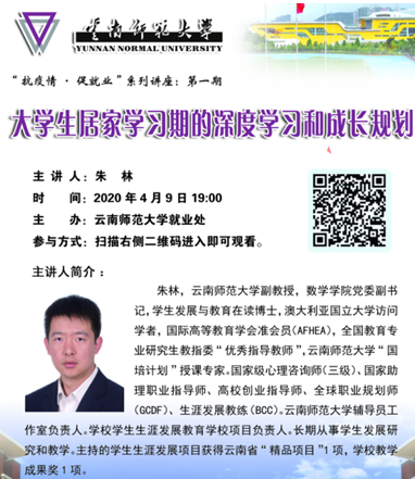 为切实做好永利官网新冠疫情防控期间的毕业生就业指导工作,进一步提升就业指导的精准性,增强毕业生就业本领和就业热情,就业处整合校内资源以线上讲座形式开展“抗疫情·促就业”系列讲座。首期讲座由数学学院副书记朱林担任,于4月9日晚19:00通过腾讯课堂向永利官网学生作网络直播视频讲座。