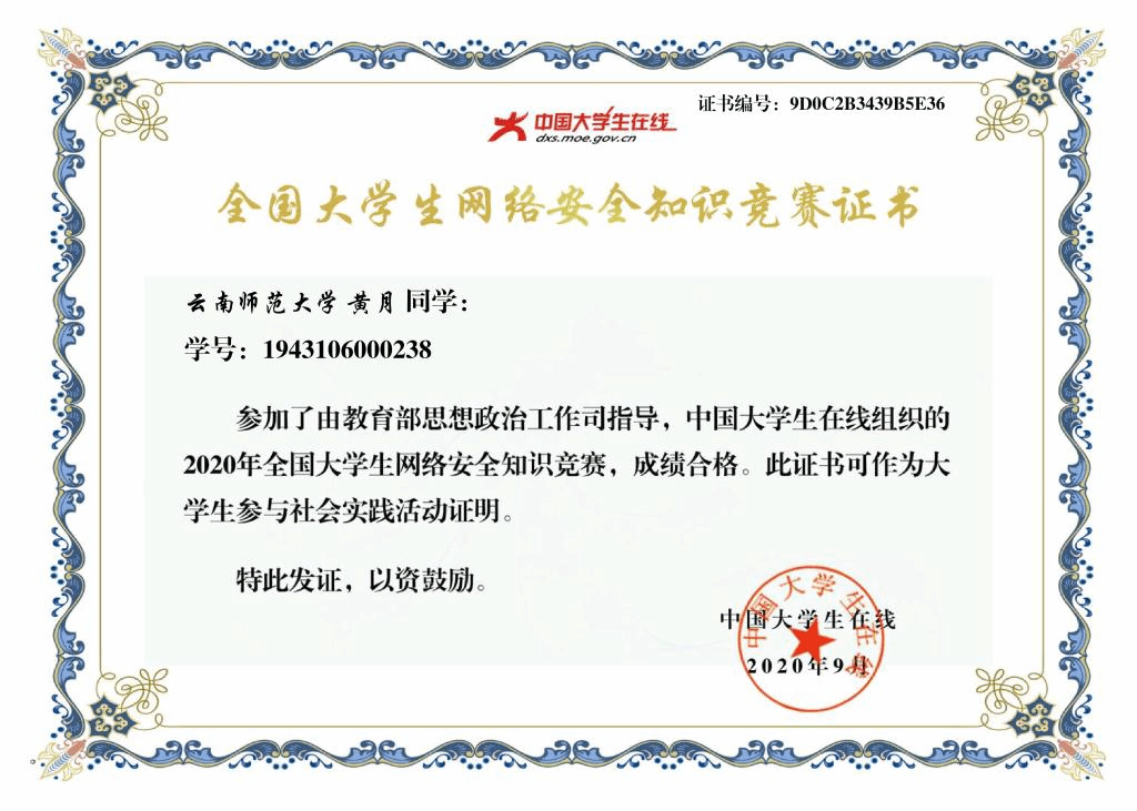 9月10日起,学校还组织学生参与了“2020年全国大学生网络安全知识竞赛”,进一步普及网络安全教育知识。