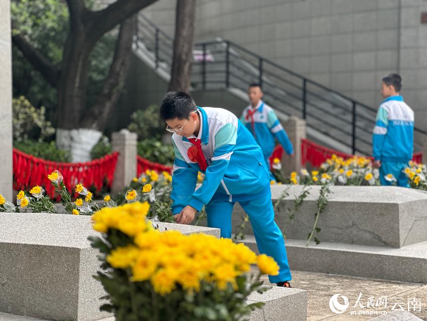 为烈士献上手中的鲜花。人民网 曾智慧摄