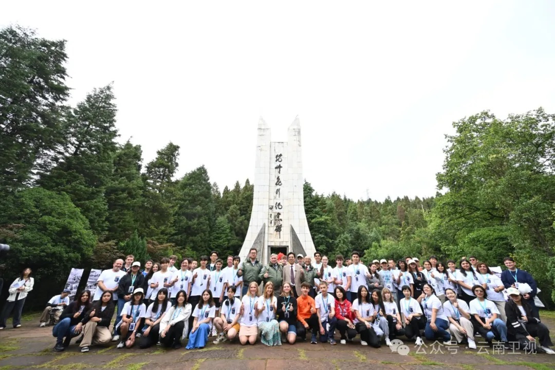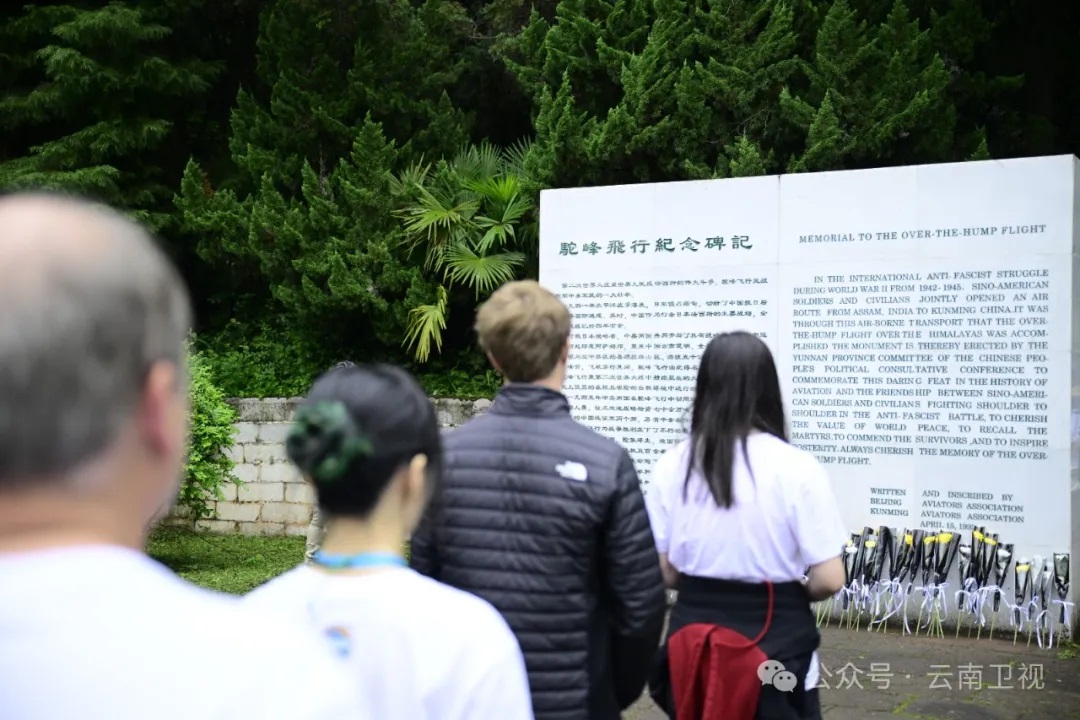6月28日清晨,昆明郊野公园笼罩在蒙蒙细雨之中。在位于公园高处的驼峰飞行纪念碑前,“汉语桥——‘飞虎队’主题美国青少年来华夏令营”的70名营员拾级而上,一起缅怀83年前的“驼峰飞行”。