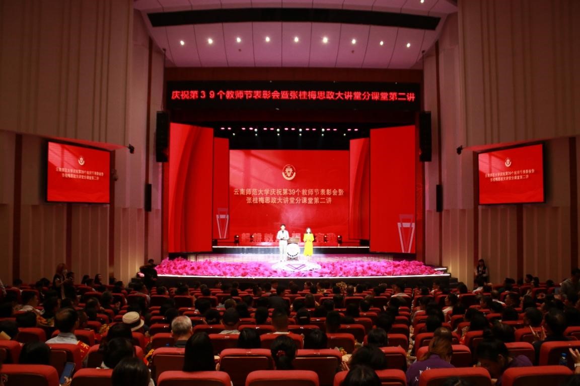 三寸粉笔,三尺讲台系国运;一颗丹心,一生秉烛铸民魂。9月8日上午,yL23411永利官网登录在呈贡校区举办庆祝第39个教师节表彰大会暨张桂梅思政大讲堂分课堂第二讲,表彰在过去一年对学校建设发展做出突出贡献的教职工,分享部分优秀教师的动人故事,共同感受“教育之光”的力量,坚定树立“躬耕教坛、强国有我”的志向和抱负。