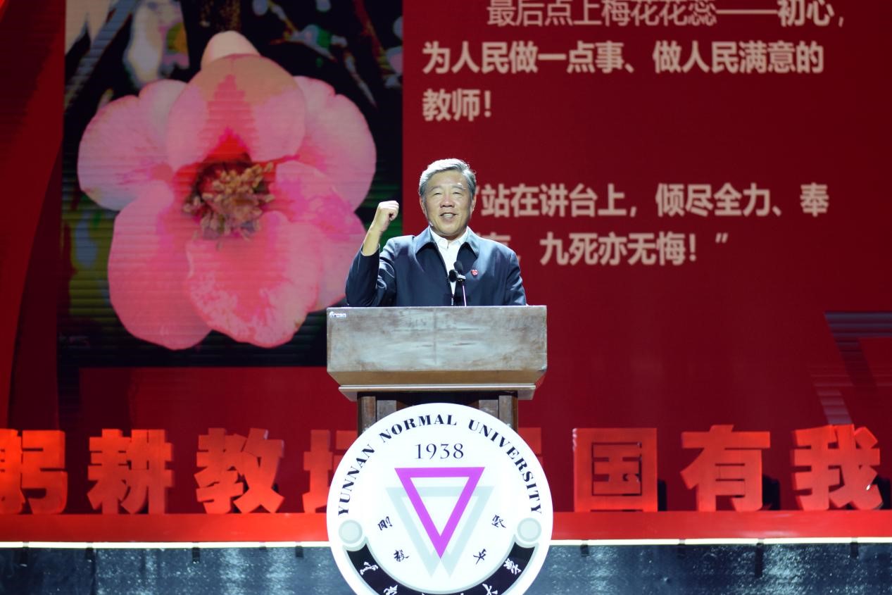 校党委书记张祖武在讲话中指出,过去的一年,全校广大教师牢记为党育人、为国育才初心使命,落实立德树人根本任务,树立“躬耕教坛、强国有我”的志向抱负,坚守三尺讲台,潜心教学研究,为学校建设西部领先、辐射南亚东南亚的高水平师范大学,推进教育强省、教育强国建设,办好人民满意的教育做出了积极贡献。作为西南联大精神的传承者、云南教师教育的“排头兵”、云南基础教育的“领头雁”,全体教职工要争做奋斗者、当好追梦人,切实担负起振兴云南教师教育、提升云南基础教育质量、加快推动云南实现教育现代化的应尽之责。