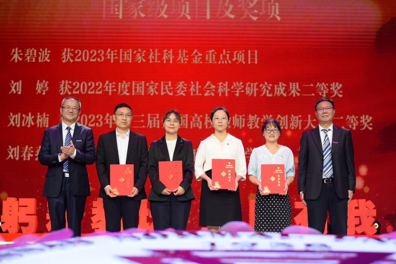 校党委副书记李宏,副校长安学斌,校纪委书记、监察专员孙剑,学校省管干部,部分离退休老领导,各学院各部门主要负责人和教师代表,附属中小学、民主党派、学生代表,2023年受表彰的教师代表,光荣从教35年的教职工代表参加会议。