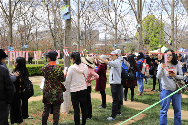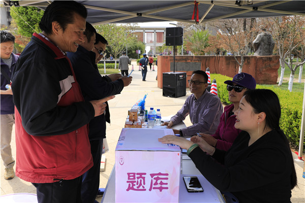 “迎春踏青校园健步走”顺利结束后,红烛广场掀起了“大套活鸡”、“安全知识竞答”、“疯狂的乒乓球”、“蒙眼击锣”、“极光套圈”、“欢乐可乐”、“妙语连珠”、“ 乾坤大挪移”、“你来比我来猜”、“健康呼啦啦、快乐转转转、幸运抽抽抽”、“中国地图填图游戏”、“猜谜语”等各具特色的活动热潮。红烛广场洋溢着女教职工们的阵阵笑声、欢呼声,引来众多学生的驻足观望,一起分享老师们的快乐。