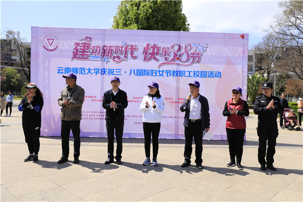 新学期伊始,“三八国际妇女节”的温馨气息又扑面而来。为庆祝“三八国际妇女节”,更好地服务广大女教职工,让她们过上一个温馨、和谐的节日。37日,由校工会和校工会女职工委员会主办,各二级部门工会协办,以“建功新时代、快乐三八节”为主题的教职工校园活动在呈贡主校区红烛广场举行。校党委副书记张玮、副校长郝淑美,属地派出所领导以及全校女职工、部分男教职工代表1000余人参加了活动。