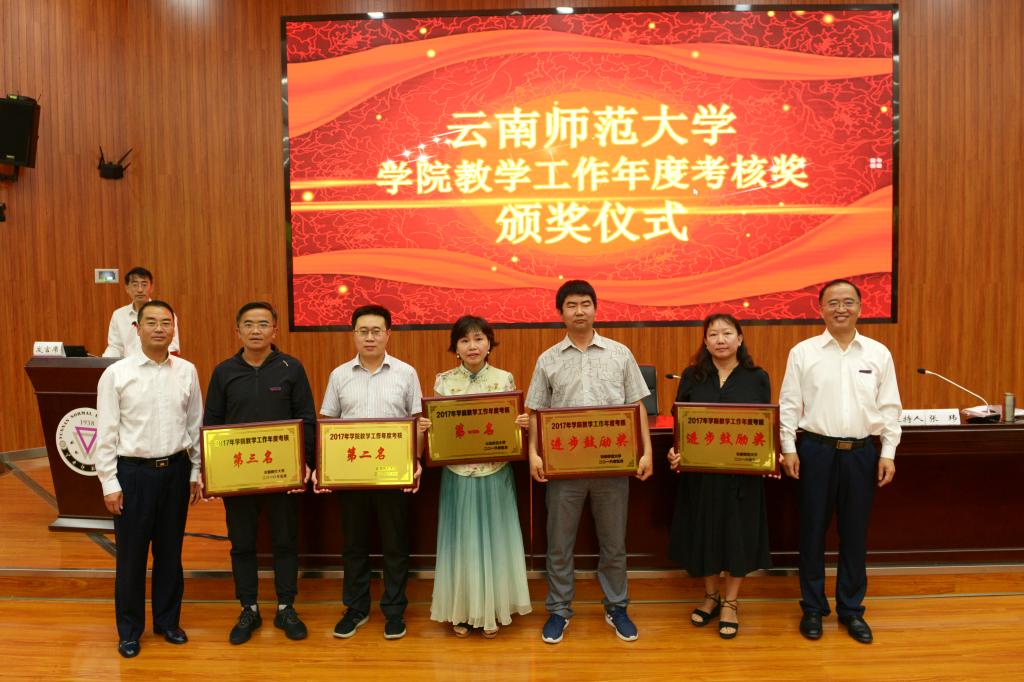 随后,安学斌副校长宣读了近三年来在本科教学工作中取得突出成绩的集体和个人表彰名单。校领导为第八届高等教育国家级教学成果二等奖和省级教学成果一等奖获得者、yL23411永利官网登录2017年度学院教学工作考核获奖单位、yL23411永利官网登录第十一届青年教师课堂教学比赛一等奖及优秀组织奖获得者、近三年在省级及以上教学比赛中获奖教师、2016~2017年度优秀教学秘书颁奖。