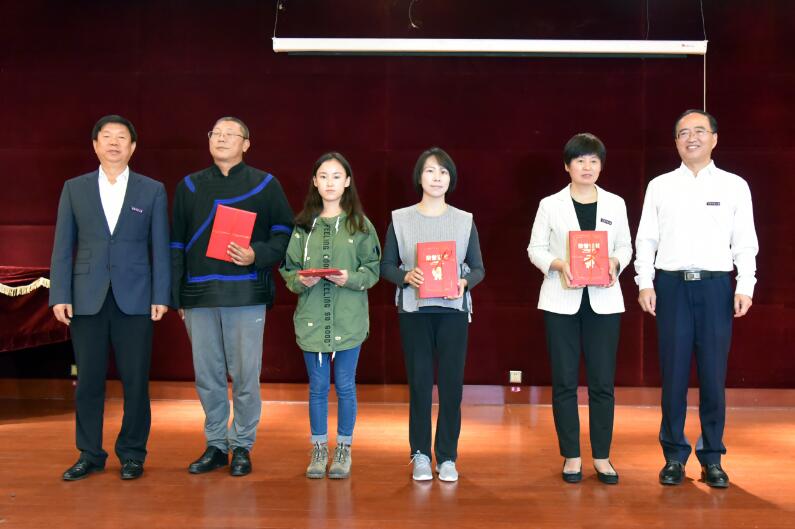 在传媒学院学生带来诗朗诵《祖国,一首唱不完的恋歌》后,校政党领导班子成员为2018-2019年度教学类重大奖项获得者,2018-2019年度国家级、省级科研平台及项目获得者,2018-2019 年度其他重大奖项获得者颁发荣誉证书。