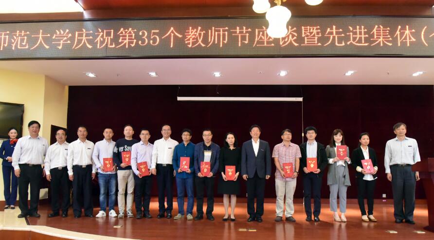 会上,校党委饶卫书记作了讲话。饶书记首先代表学校党委,向辛勤耕耘、默默奉献的全校教职工致以节日的问候,向受表彰的先进集体、先进个人表示热烈的祝贺。饶书记强调,党的十八大以来,学校在习近平新时代中国特色社会主义思想的引领下,加快推进教师教育为特色的高水平大学建设,取得了一系列成绩,这些成绩的取得是省委省政府正确领导的结果,是一代代师大人不忘初心、牢记使命,弘扬传统、改革创新,担当作为、艰苦创业的结果。饶书记表示,长期以来,广大教职工弘扬西南联大精神,教书育人、管理育人、服务育人,爱岗敬业、甘为人梯,为广大学生的成长成才和学校的发展做出了积极贡献,涌现出了一批争先进、做表率、出实绩、讲奉献的优秀教师。他们用自己对教师职业的热爱和责任,在自身平凡的岗位上做出了不平凡的业绩,是我们学习的榜样。饶书记寄语全校教职工要切实做到政治过硬,时刻铭记立德树人使命,勇于创新创造、锻造过硬本领,紧密团结在以习近平同志为核心的党中央周围,不忘初心、牢记使命,与学校党委同心同德、同向同行,以崭新的奋进姿态迎接新中国成立70周年华诞,为云南全面建成小康社会,加快实现教育现代化做出新的更大贡献。
