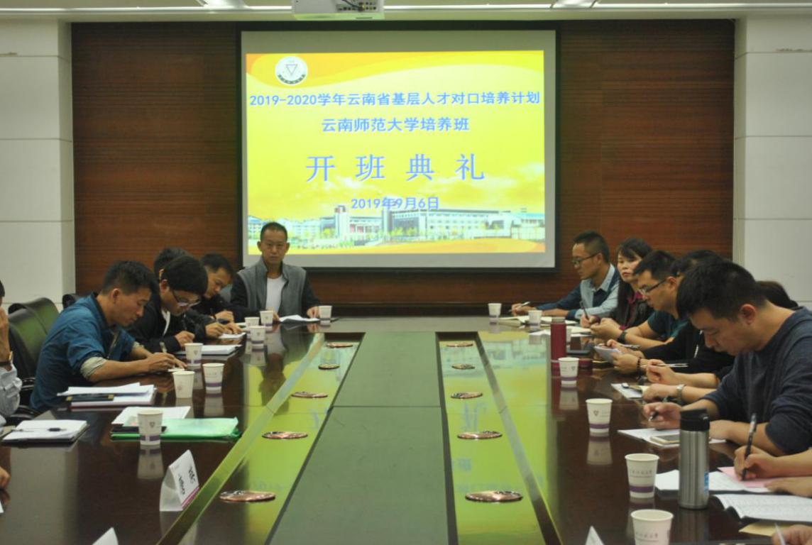 9月6日上午,2019-2020学年云南省基层人才对口培养计划yL23411永利官网登录培养班开班典礼在永利官网呈贡主校区行政办公楼第一会议室举行。校党委副书记张玮、副校长武友德,党委组织部部长蔡金红,成人继续教育学院、教育学部、文学院、数学学院、物电学院、信息学院等相关学院负责人、导师及来自全省9个州市的16名学员参加了开班典礼。典礼由武友德副校长主持。