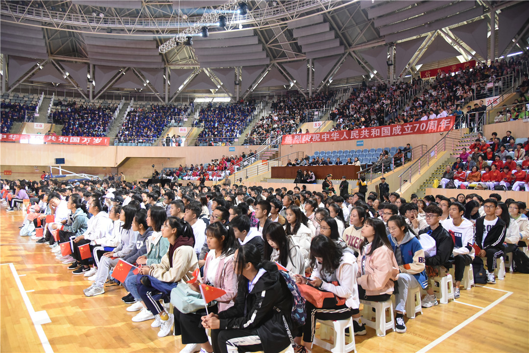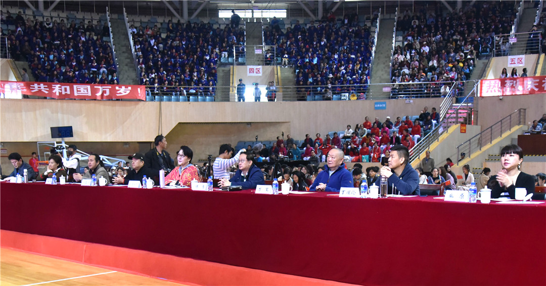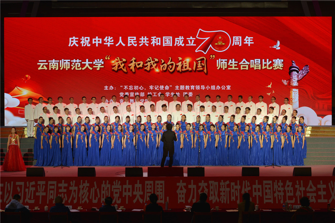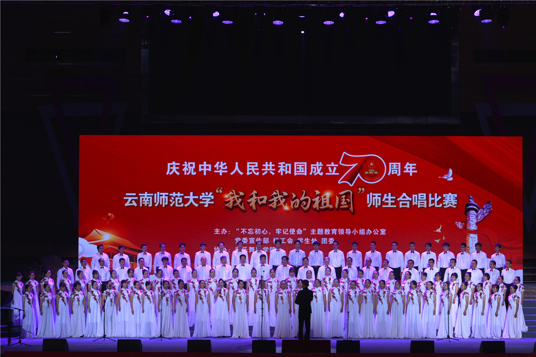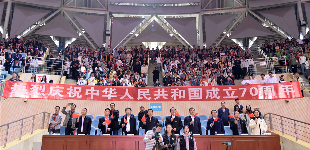 9月26日下午,在中华人民共和国成立70周年、全校上下正开展“不忘初心、牢记使命”主题教育之际,为进一步激发广大师生的爱国热忱,凝聚爱校之情,以实际行动深入学习贯彻习近平新时代中国特色社会主义思想,唱响爱国主旋律,弘扬爱党、爱国、爱校精神,激发干事创业的热情,凝聚推动学校发展的强大合力,yL23411永利官网登录庆祝中华人民共和国成立70周年“我和我的祖国”师生合唱比赛在呈贡主校区莲花体育馆举行。比赛由“不忘初心、牢记使命”主题教育领导小组办公室、党委宣传部、校工会、学生处、团委主办,音乐舞蹈学院协办。校党委书记饶卫,党委副书记、校长蒋永文,党委副书记张玮、李宏,副校长刘宗立、牛治亮、刘坚、郝淑美及相关职能部门负责人出席活动。比赛由传媒学院老师杨颖、谭辉,2017级本科生杨源珠、2016级本科生丁宁主持。