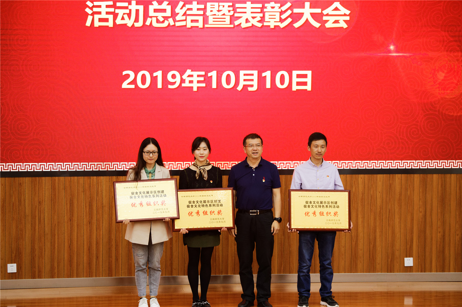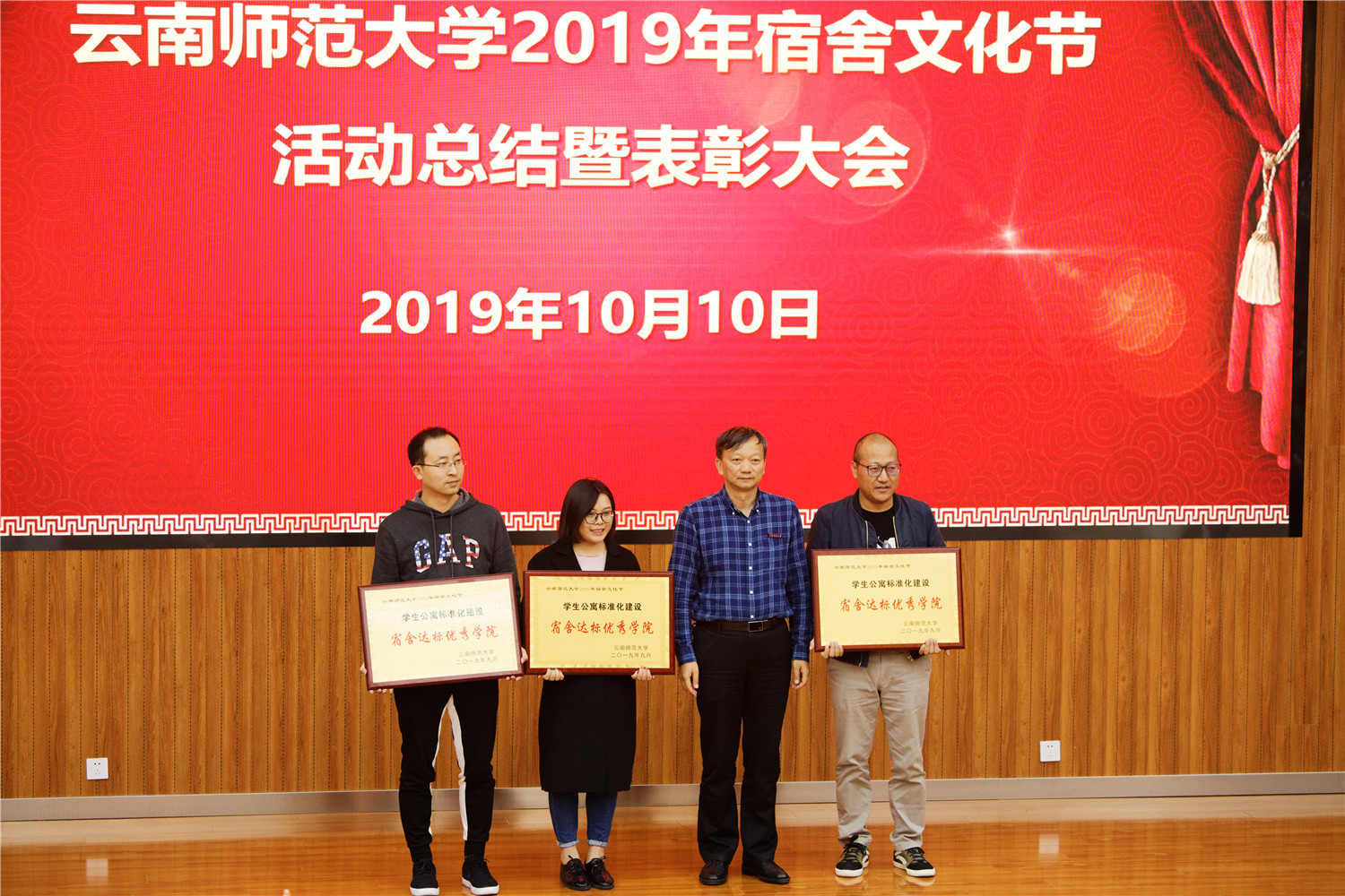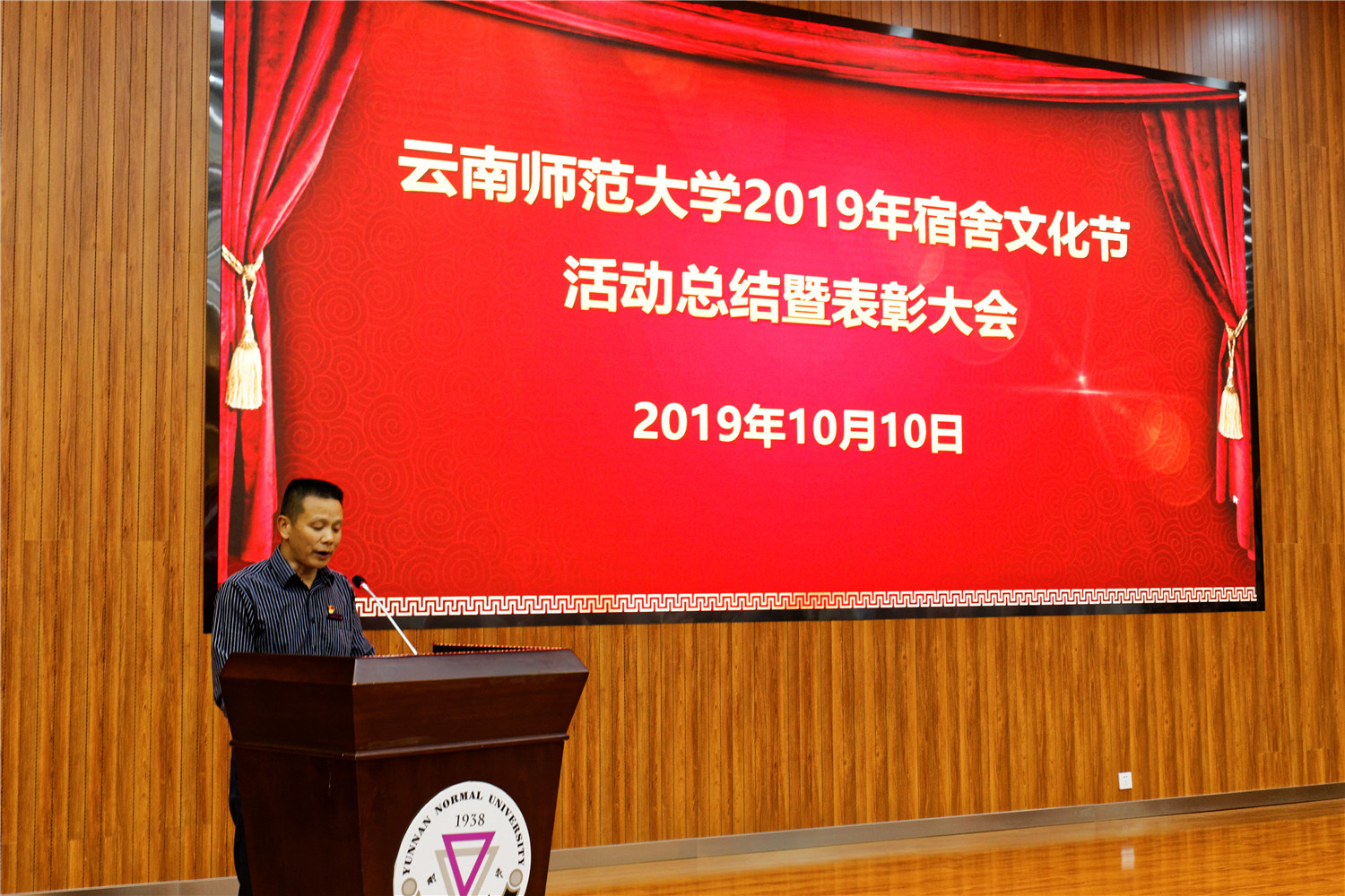 2019年10月10日下午,永利官网2019年宿舍文化节活动总结暨表彰大会在呈贡主校区汇学楼2栋101报告厅举行。校党委副书记李宏,副校长牛治亮,党委组织部、党委宣传部、研究生工作部、学生处、校团委、保卫处、后勤保障服务中心等部门负责人,各学院党委副书记、教师代表,获奖学生代表等参加了表彰会。会议由学生处处长杨卫国主持。