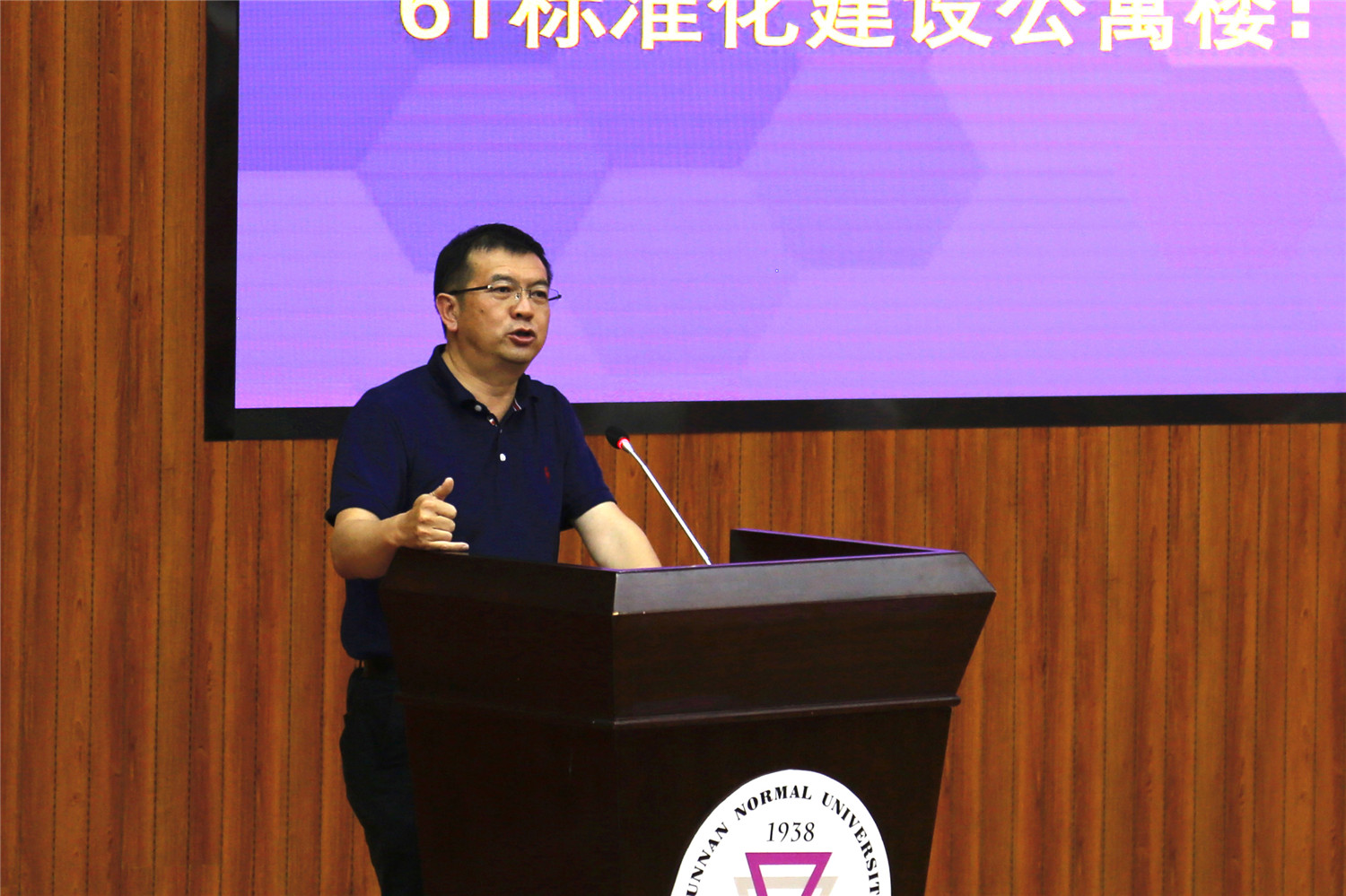 李宏副书记在会上指出,此次大会不仅仅是对本次宿舍文化节的总结,也将是宿舍文化建设工作新征程的起点,是宿舍标准化达标建设新一轮活动的启动仪式。如今我们的宿舍管理有进步,让宿舍成为充分展示青年学子热爱生活、自信乐观、团结向上、文明高雅精神状态的舞台。相信通过一系列的宿舍文化活动,同学们会更积极地参加宿舍文化建设工作,通过大家的努力一起建设好永利官网宿舍文化。希望同学们积极参与宿舍文化建设工作,各学院、各部门都要高度重视,形成各自的宿舍标准化建设的工作方案和工作目标,努力营造“全员育人、全方位育人、全过程育人”的良好氛围,共同创建和谐健康的宿舍文化氛围。