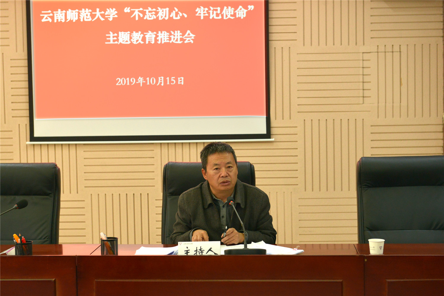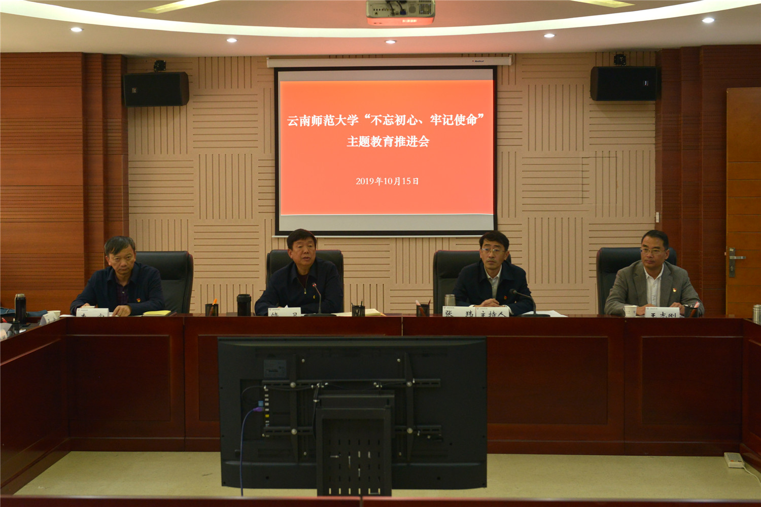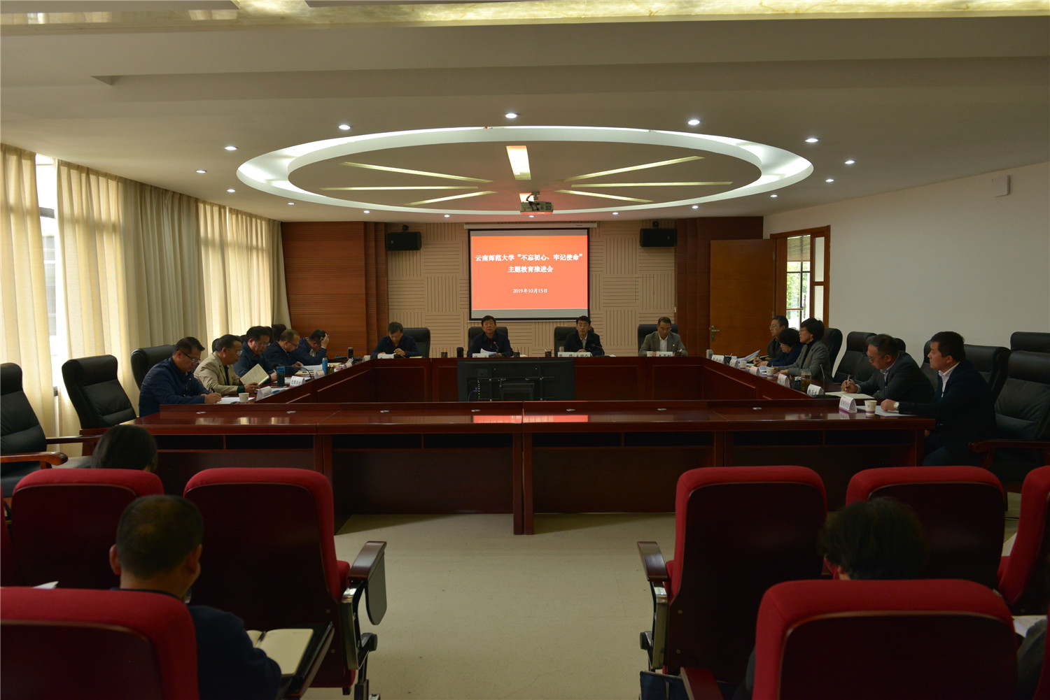 2019年10月15日,根据中央第四巡回督导组指导学校主题教育座谈会和全省第二批“不忘初心、牢记使命”主题教育推进会议精神,永利官网在行政楼340会议室召开主题教育推进会。校党委书记饶卫,校党委副书记张玮、李宏,校纪委书记王志刚,各单位党委、党总支、直属党支部书记,各部门党员主要负责人,校党委主题教育领导小组办公室主任、副主任和各工作组组长、副组长,校党委主题教育指导组组长参加了会议。会议由校党委副书记张玮主持。