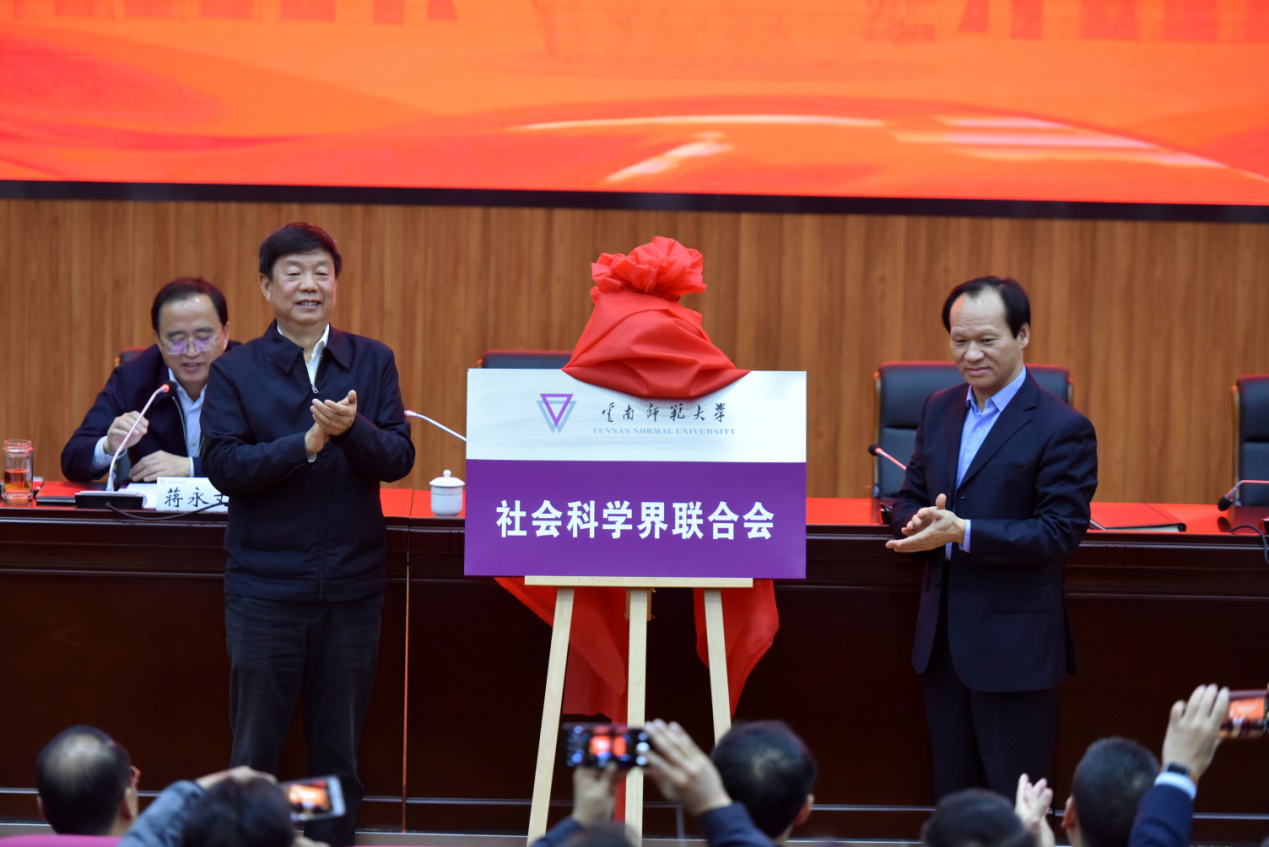会议最后,云南省社科联王建华副主席、校党委饶卫书记为yL23411永利官网登录社会科学界联合会揭牌。