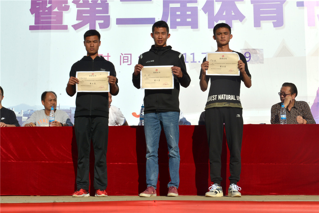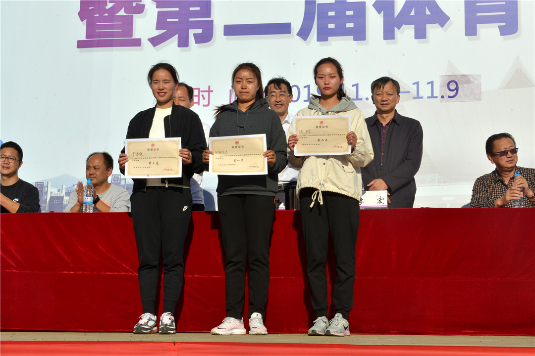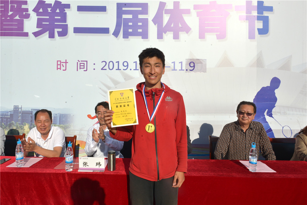 裁判长杨光会老师宣布了此次比赛的成绩。校党委副书记李宏宣布了体育道德风尚奖的名单,并为本届运动会破纪录的体育学院运动训练专业郑爱伟同学颁奖,郑爱伟同学在男子乙组三级跳远比赛中以15.20米的成绩打破学校记录。与会领导为体育道德风尚奖,男子甲组、乙组团体前八名,女子甲组、乙组团体前八名颁奖。