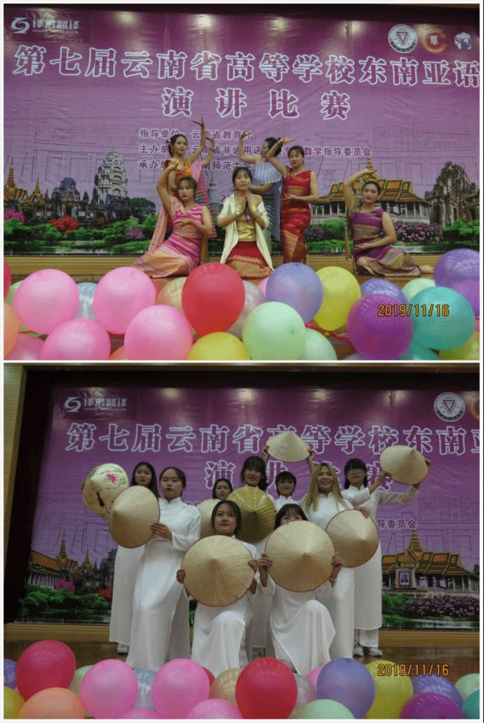 2019年11月16日,由云南省教育厅指导、云南省非通用语种类专业教学指导委员会主办、yL23411永利官网登录承办、昆明译诺翻译服务有限公司赞助的第七届云南省高等学校东南亚语演讲比赛在yL23411永利官网登录呈贡校区举行。老挝人民民主共和国驻昆明总领事馆领事MANISOUK CHIEMSISOULATH,缅甸联邦共和国驻昆明总领事馆领事U MIN CHAN MYAE,泰王国驻昆明总领事馆领事VORAPONG VADHANASINDHU,云南教育国际交流协会倪慧芳会长、杨光民副会长、葛雪萍顾问,云南省教育厅对外交流合作处龙微副处长,yL23411永利官网登录郝淑美副校长,yL23411永利官网登录云南华文学院王秀成院长,云南省非通用语指导委员会杨丽周、杨健、马丽亚等领导和嘉宾,以及来自全省30所高校的参赛师生出席了开、闭幕式和比赛。
