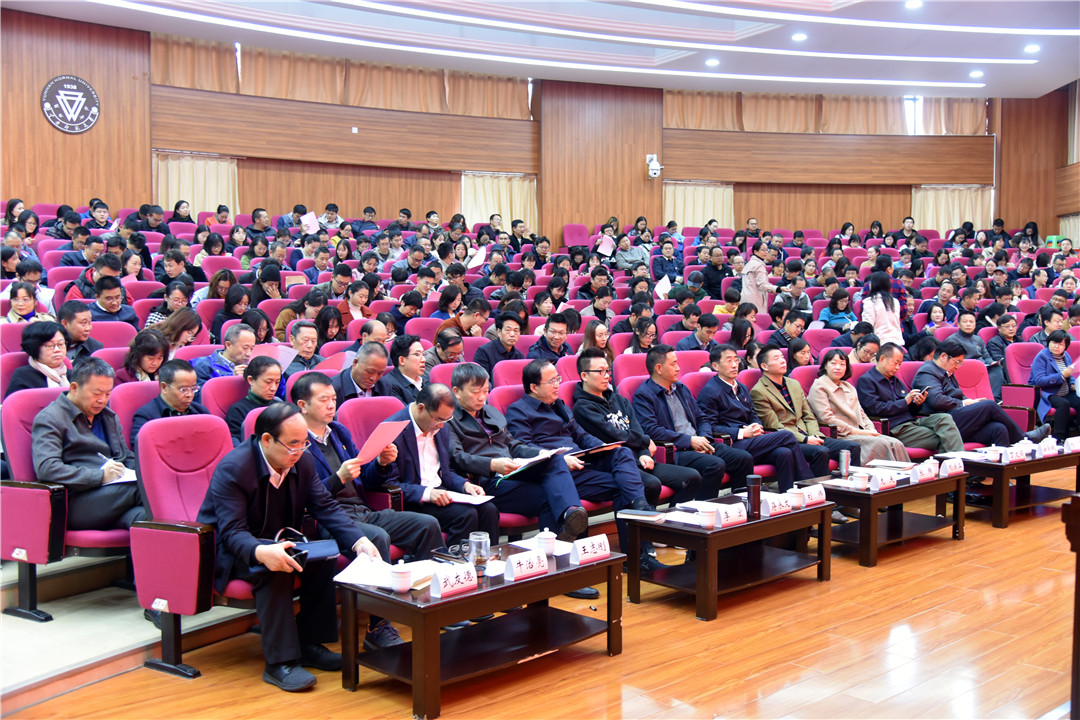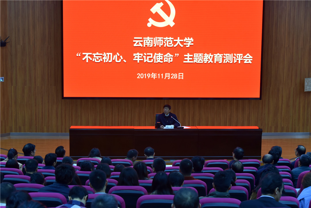 根据中央、省委关于第二批“不忘初心、牢记使命”主题教育的工作部署,永利官网于11月28日上午,在呈贡校区汇学楼二栋101报告厅召开yL23411永利官网登录“不忘初心、牢记使命”主题教育测评会。省委第十七指导组刘炜同志、龙庆同志,校党政领导、其他在职省管干部,各单位党委、党总支、直属党支部书记、副书记,各学院、各部门、直属单位、附属中小学、独立学院行政主要负责人,各学院师生党支部书记、党员、群众代表,机关全体党支部书记、党员、群众代表,离退休教职工代表共计310余人参加了会议。会议由校党委书记、校党委“不忘初心、牢记使命”主题教育领导小组组长饶卫同志主持。