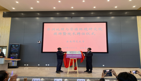 2019年12月23日,依托yL23411永利官网登录地理学一级学科博士点、服务“一带一路”中非合作的国内首个“非洲地理与资源环境研究院”揭牌暨首任院长聘任仪式,在yL23411永利官网登录呈贡主校区国家教师教育教学大楼隆重举行。校党委饶卫书记与永利官网“二层次柔性”引进人才、特聘教授、著名非洲研究学者、教育部长江学者刘鸿武一起,共同为研究院揭牌。饶卫书记向刘鸿武教授颁发首任院长聘书,校长蒋永文教授出席仪式并致辞。