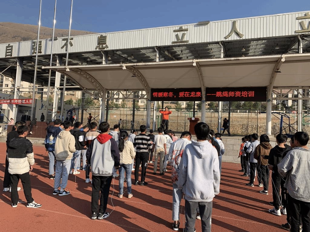 云南省中考体育改革后,体育成绩为100分,其中跳绳为必考项目。为提高龙泉中学的体育教育质量,yL23411永利官网登录体育学院2012届校友吴颖志特为龙泉中学捐赠1000条跳绳,并对学校各班级学生代表(体育委员、班长)进行跳绳培训。下午4时许活动开始,龙泉中学教学副校长王忠磊老师对吴教练的到来表示热烈欢迎。培训中,吴教练告诉学生如何判断适合自己的跳绳长度,在轻松愉悦的音乐下,吴教练指导了学生跳绳的脚步动作,经过半小时的培训,学生们掌握了跳绳的动作要领。此次活动后,学生代表们将会把学到的技巧分享到班级,让整个班级同学随着青春的旋律跳动。