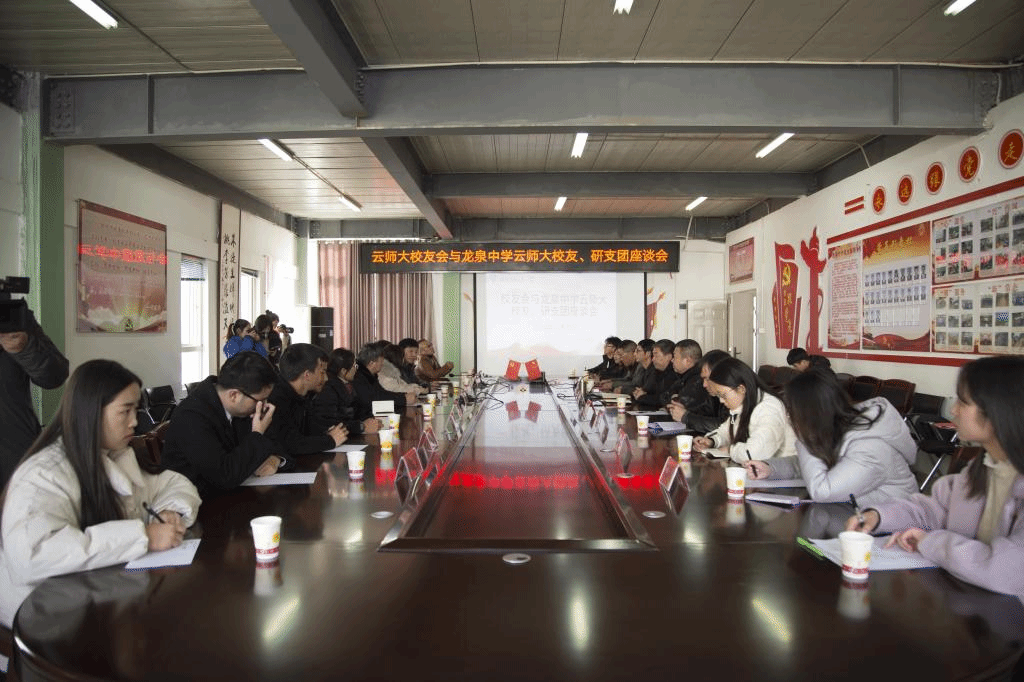随后,为促进母校与校友情感、两校信息的交流沟通,助推校友在自身事业领域的蓬勃发展,云师大校友会与龙泉中学云师大校友、研支团座谈会在龙泉中学知行楼党员活动室开展。yL23411永利官网登录党委副书记李宏、鲁甸县分管教育副县长高涛、龙泉中学党支部副书记甘小泉老师以及四位云师校友参加座谈,座谈会由龙泉中学党支部书记、校长邵发志老师主持。师大校友们表示,接受高等教育的目的不是为了摆脱贫困的家乡,而是为了帮家乡摆脱贫困,走出去的目的是为了帮助更多的人走出去。鲁甸县分管教育副县长高涛亦为云师大校友,为各位老师热情介绍了鲁甸县的地理环境,历史位置,扶贫情况及教育发展情况,并表示希望多与高校接触、学习,努力发展鲁甸县的基础教育,在扶贫的基础上扶智,进一步完善鲁甸县基础教育系统,为高校输送更多的人才,为鲁甸的建设作出更大的贡献。此次座谈会的开展,充分体现了高校与基础教育联系的重要性,座谈会不仅加强了两校情感,也为龙泉中学基础教育的发展提供了宝贵意见。