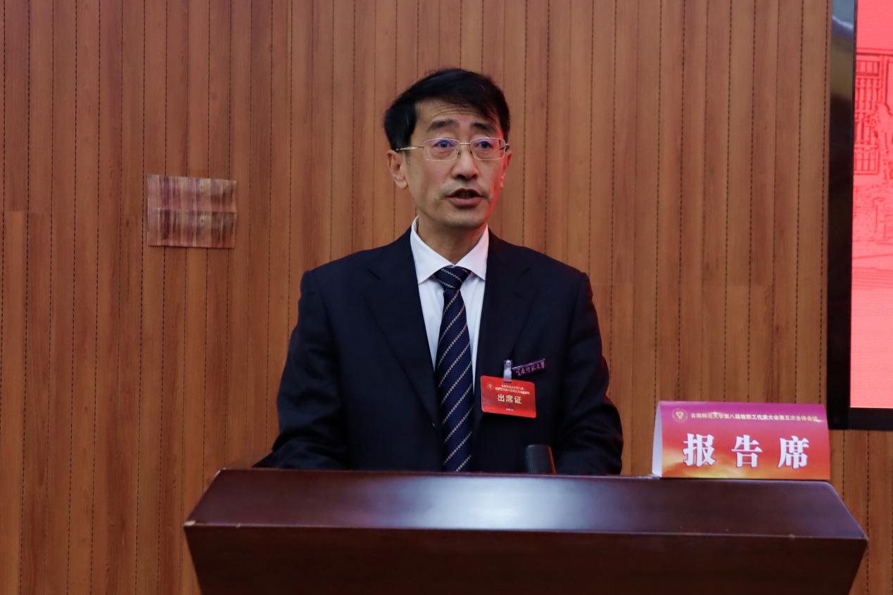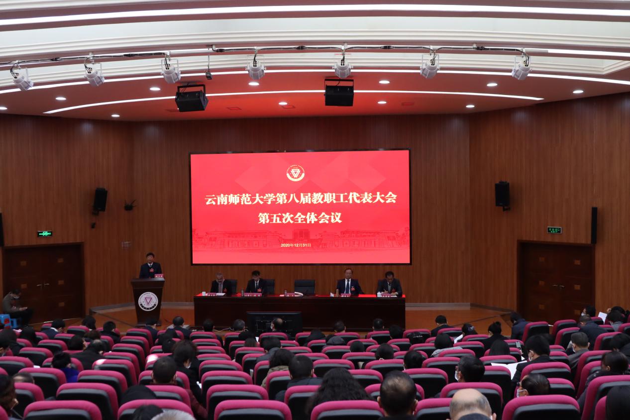 12月31日,yL23411永利官网登录第八届教职工代表大会第五次全体会议在呈贡主校区汇学楼报告厅胜利召开。全体校领导、第八届教职工代表大会正式代表及列席代表170人参加会议。会议由校党委副书记、工会主席张玮主持。