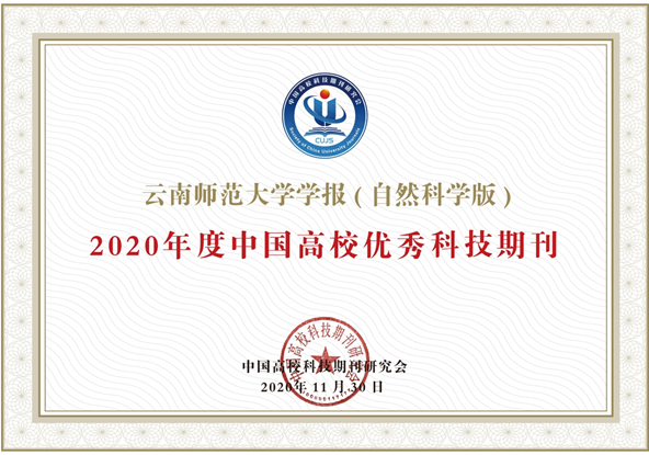 《yL23411永利官网登录学报(自然科学版)》荣获中国高校科技期刊研究会颁发的“2020年度中国高校优秀科技期刊”。该项目遴选依据北大核心数据、CSCD数据、科技核心数据、知网学术评价数据、万方扩刊版数据、中信所精品科技期刊和百杰期刊及知网国际影响力数据等第三方客观数据,经过加权计算,从中国高校科技期刊研究会1000多家期刊中遴选产生。这是本刊继2016年和2018年荣获该奖项之后连续第三次获得该奖项。