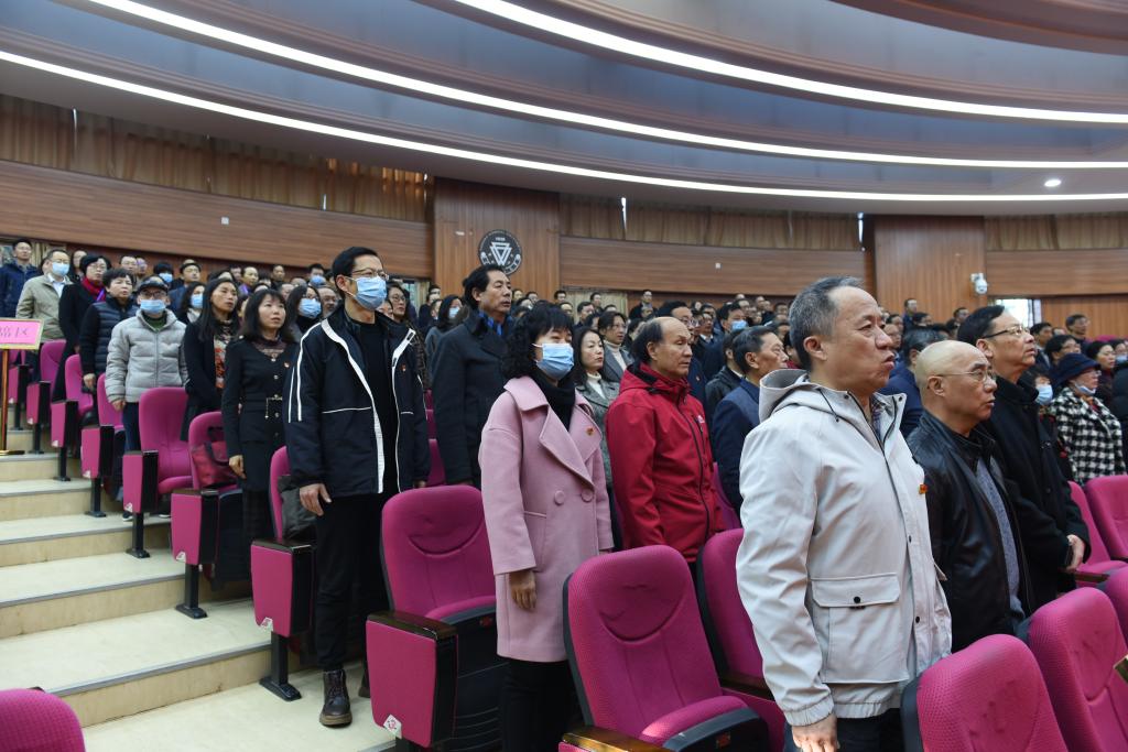 在庄严的国歌声后,校党委书记饶卫同志代表校党委作题为《牢记嘱托 奋勇前行 以新的更大作为开创高水平大学建设新局面》的2020年度工作报告。饶书记指出,2020年是校党委充分发挥领导核心作用,奋力夺取校园疫情防控阻击战和年度发展任务目标“双胜利”的一年。在以习近平同志为核心的党中央坚强领导下,在省委、省政府、省委教育工委、省教育厅的正确领导下,学校党委坚持以习近平新时代中国特色社会主义思想为指导,增强“四个意识”、坚定“四个自信”、做到“两个维护”,深入学习贯彻党的十九大和十九届二中、三中、四中、五中全会精神,贯彻落实省委十届十次、十一次全会精神,学习贯彻习近平总书记考察云南重要讲话、考察调研西南联大旧址重要指示精神,全面落实新时代党的建设总要求,以政治建设为统领加强学校党的建设,推动全面从严治党向纵深发展,教师教育为特色高水平大学建设不断取得新成效:一是校党委坚决做到“两个维护”,奋力推动习近平总书记考察云南重要讲话、考察调研西南联大旧址重要指示精神在学校落地生根、开花结果;二是校党委以党的政治建设为统领推动党建质量全面提升,干部师生思想上的团结统一更加巩固,心向党、听党话、跟党走、感党恩的信念更加坚定;三是全面加强党对校园疫情防控、毕业生就业、安全稳定等重大工作的组织领导,党在学校的凝聚力向心力大大增强;四是突出政治标准选任干部,干部队伍知识化、专业化、年轻化水平显著提高;五是教育教学改革不断深化,人才培养质量加快提升;六是新一轮博士点申建取得良好开局;七是科研创新能力稳步推进;八是对外合作办学水平有效提升,社会服务能力有力彰显。