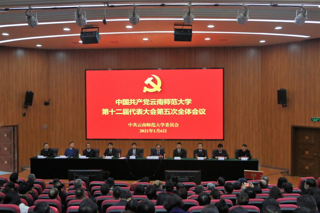 1月6日上午,中国共产党yL23411永利官网登录第十二届代表大会第五次全体会议在呈贡主校区汇学2栋101报告厅召开。中共yL23411永利官网登录第十二次代表大会代表;其他中共党员省管干部;不是正式代表的各学院、各部门、直属单位、附属中小学校、独立学院中共党员主要负责人(含主持工作的副职);非中共党员省管干部;人大代表、政协委员,各民主党派基层组织负责人和无党派知识分子代表;各学院、各部门、直属单位、附属中小学校、独立学院非中共党员主要负责人等160余人出席会议。会议由校党委副书记、校长蒋永文同志主持。