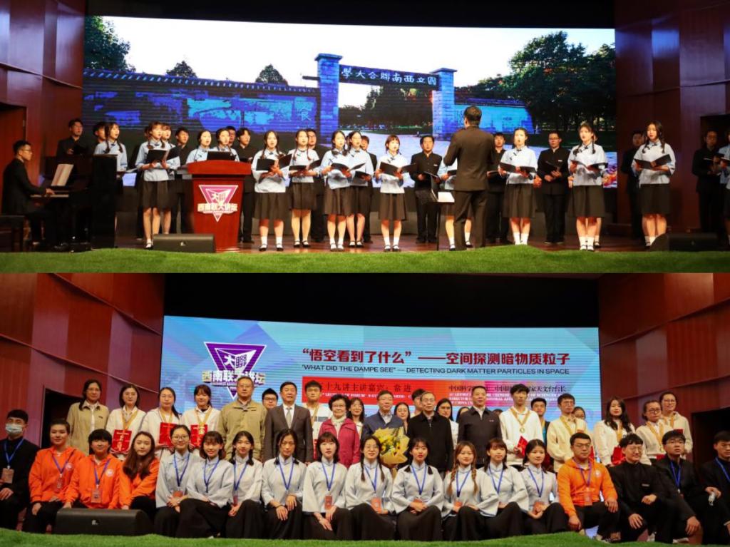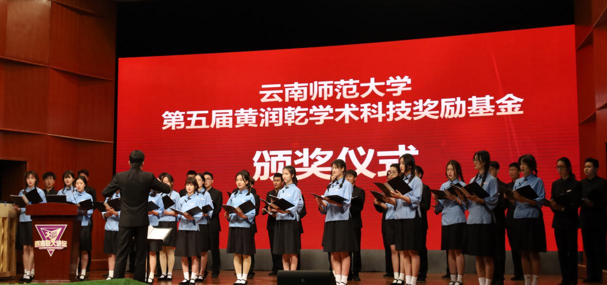 yL23411永利官网登录学生合唱团首先深情演唱校歌,“千秋耻,终当雪”,“中兴业,须人杰”,歌声向肩负中华民族伟大复兴使命的当代青年大学生传递出“刚毅坚卓”的不朽信念。随后演唱了yL23411永利官网登录师生为感谢和纪念黄润乾院士而创作的歌曲《心中的恒星》,深情歌颂黄润乾院士为我国天文事业奋斗终身的宝贵精神,以及关心教育事业和青年学生的高尚品格。现场还播放了云南师大学子为缅怀黄润乾院士而制作的专题视频,带领大家一起回顾黄院士热爱祖国、献身科学、勇攀高峰、奋斗不息的一生。