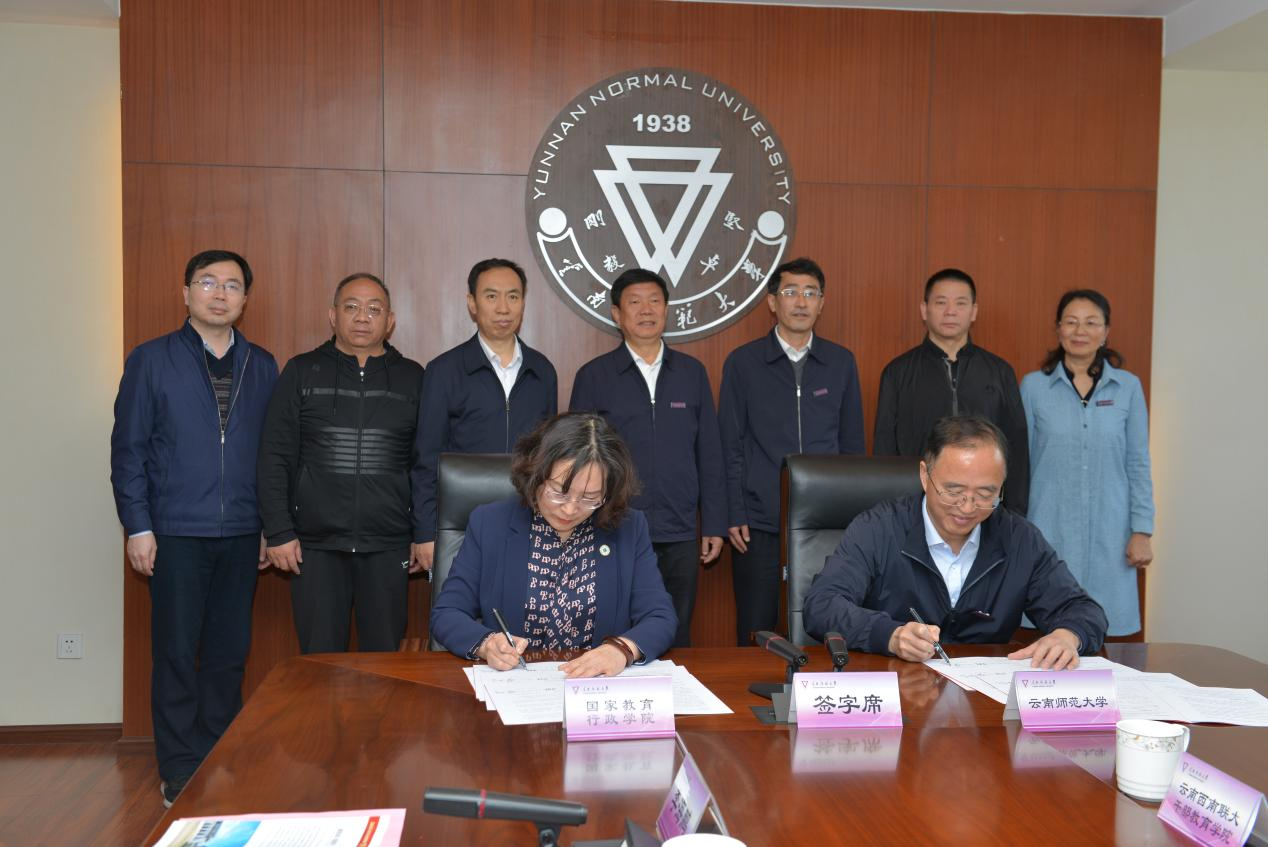 4月18日上午,永利官网与国家教育行政学院在一二一西南联大校区举行共建国家教育行政学院云南培训基地合作协议签字仪式。国家教育行政学院党委书记、常务副院长侯慧君,副院长于京天,纪检监察处长陈国文,科研部主任李海鹏,教务部副主任杨志,后勤管理服务中心副主任鲍亚南,永利官网党委书记饶卫、校长蒋永文、副校长刘宗立,党委办公室、校长办公室、党委组织部、党委宣传部、对外合作处、教育学部、一二一西南联大校区管委会办公室、西南联大博物馆、国家教育行政学院云南培训基地办公室、云南西南联大干部教育学院等单位主要负责人出席签字仪式。仪式由校党委副书记张玮主持。