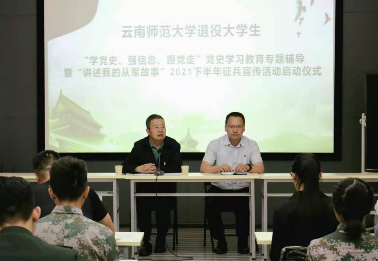 2021年4月29日下午,yL23411永利官网登录学生处、武装部针对全校退役复学士兵组织了“学党史、强信念、跟党走”党史学习教育专题辅导。副校长蔡金红,学生处、武装部相关负责人以及全校90余名退役大学生士兵参加了此次专题辅导,本次会议由学生处处长张国华主持。