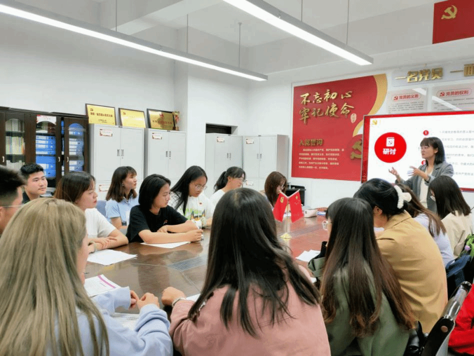 此外,外国语学院专门成立了外国语学院党史学习教育领导小组和学生党史学习精英小组,为建党一百周年开展系列主题活动做准备。此次宣讲团同学的到来也给学院党史学习精英小组带来了很多宝贵意见。主题宣讲结束后,李文丽老师组织外国语学院党史学习精英小组成员和校党史学习教育学生宣讲团成员进行面对面研讨,充分探讨交流党史学习教育的一系列活动安排,为后续的主题活动提出了很多建设性意见。