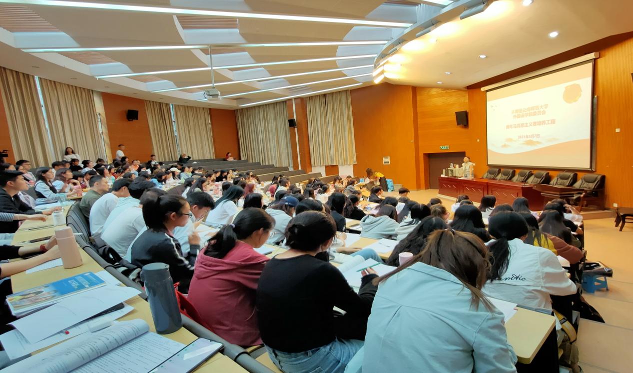 外国语学院学工办主任朱晓媛老师在讲话中指出,2021年是建党100周年,中国共产党从诞生到领导亿万中国人民建立起富强民主的新中国,再到今天建立和发展中国特色社会主义的大好局面,100年风雨历程充满艰辛与坎坷。学习党史对我们国家、对我们党、甚至于对我们每一个炎黄子孙都是一笔宝贵的财富。朱晓媛老师还向同学们详细介绍了宣讲团的各位成员,并强调了会场纪律。
