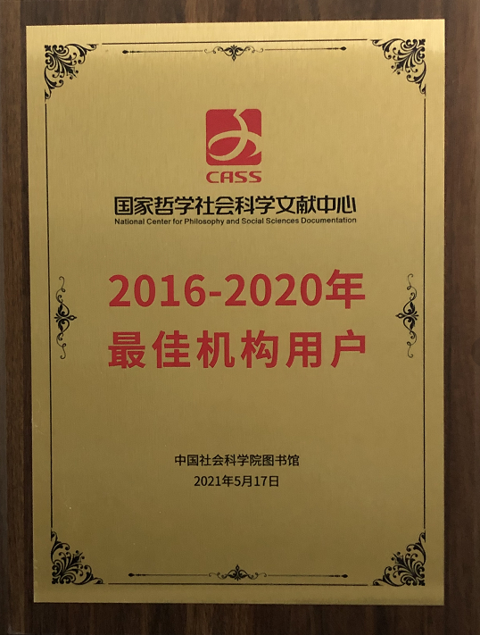 2021年5月17日,正值习近平总书记在国家哲学社会科学工作座谈会上发表重要讲话五周年之际,中国社会科学院举办了“国家哲学社会科学文献中心建设成果发布会”。会议评选出了2016—2020年最佳机构用户、最受欢迎期刊。永利官网图书馆因对“文献中心”资源宣传推广效果好、文献资源使用量位列全国机构用户前茅,荣获“最佳机构用户”称号。会议还发布了《国家哲学社会科学文献中心建设成果报告(2016—2021年)》《国家哲学社会科学文献中心学术期刊数据库用户关注度报告(2020年)》。