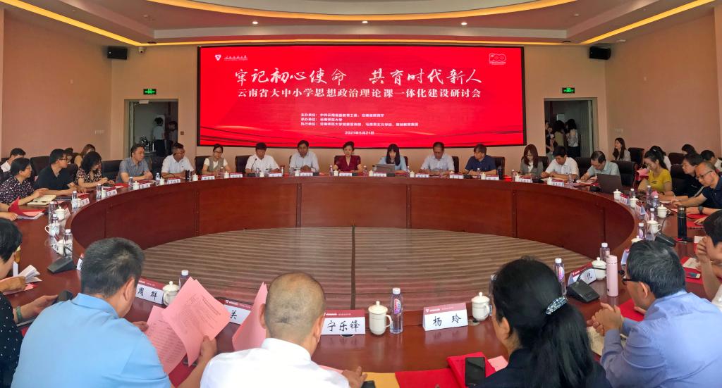 为深入贯彻落实习近平总书记在党史学习教育动员大会、学校思想政治理论课教师座谈会上的重要讲话精神,统筹推进大中小学思想政治理论课一体化建设,把党史学习教育有机融入大中小学思想政治理论课,着力推动思想政治理论课建设内涵式发展,由中共云南省委教育工委、云南省教育厅主办,yL23411永利官网登录承办的“牢记初心使命、共育时代新人——云南省大中小学思想政治理论课一体化建设研讨会”于5月21 日在永利官网呈贡主校区教师教育教学实验中心201会议室举行。