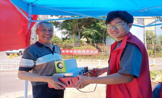 午后时分,同学们陆续维修完工一批电器,社区居民在取回修好电器的同时,纷纷高兴地向同学们表示由衷的谢意,并与负责维修的同学合影留念。