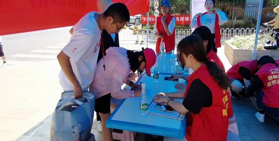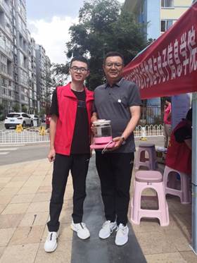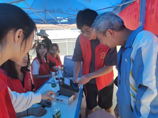 当天上午9:30,学生党员在毓和社区小广场进行维修点各项准备工作,为社区群众发放《家庭电器安全使用电注意事项宣传单》,为社区群众详细讲解家庭用电知识,并解答群众在使用电器过程中存在的问题。