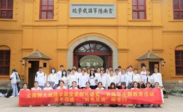 地理学部此次研学行以云南丰富的红色资源为依托,围绕党史的重要历史事件、历史活动和存在的遗迹旧址,挖掘讲述革命先辈的感人故事组织开展,旨在强化广大师生党员的革命传统教育和时代精神教育,弘扬爱国主义精神和民族精神,提高党员的党性修养,增强党组织的凝聚力和向心力,进一步推进党史学习教育走深走实。