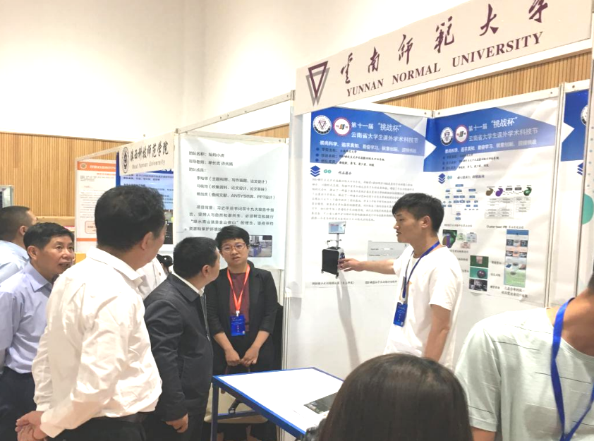 5月14日晚,第十一届“挑战杯”云南省大学生课外学术科技节终审决赛开幕式在云南中医药大学刚毅馆举行,团省委副书记赵攀峰同志代表主办单位致辞。开幕式前,出席活动的领导、嘉宾、评审专家等前往巡展现场,观看了参赛作品并与参赛选手们交流。