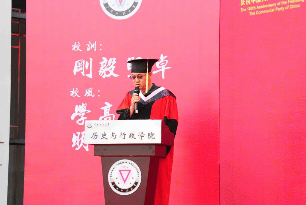 5月27日上午,历史与行政学院于明德楼三号楼前举行了2021届毕业生毕业典礼暨学位授予仪式。校党委张玮副书记,历史与行政学院余明九书记、邹建达院长、杨栋会副院长、保跃平副院长,学院学位评定委员会委员白云教授、硕士生导师张志国副教授、毛丽娟副教授,丁琼博士、闫文仙博士、2021届毕业班班主任及340余名毕业生参加了毕业典礼。毕业典礼由历史与行政学院党委副书记徐振坤主持。