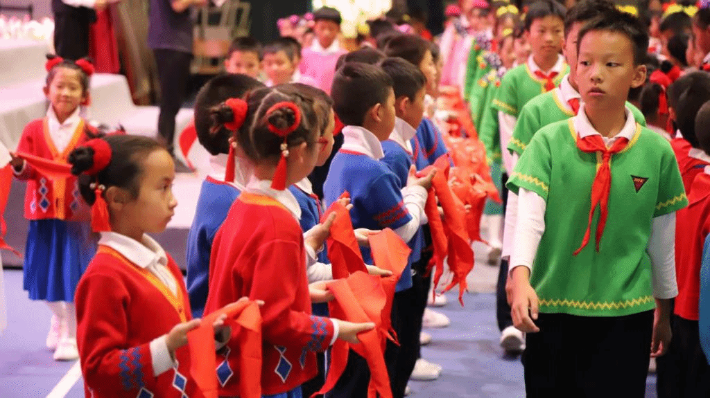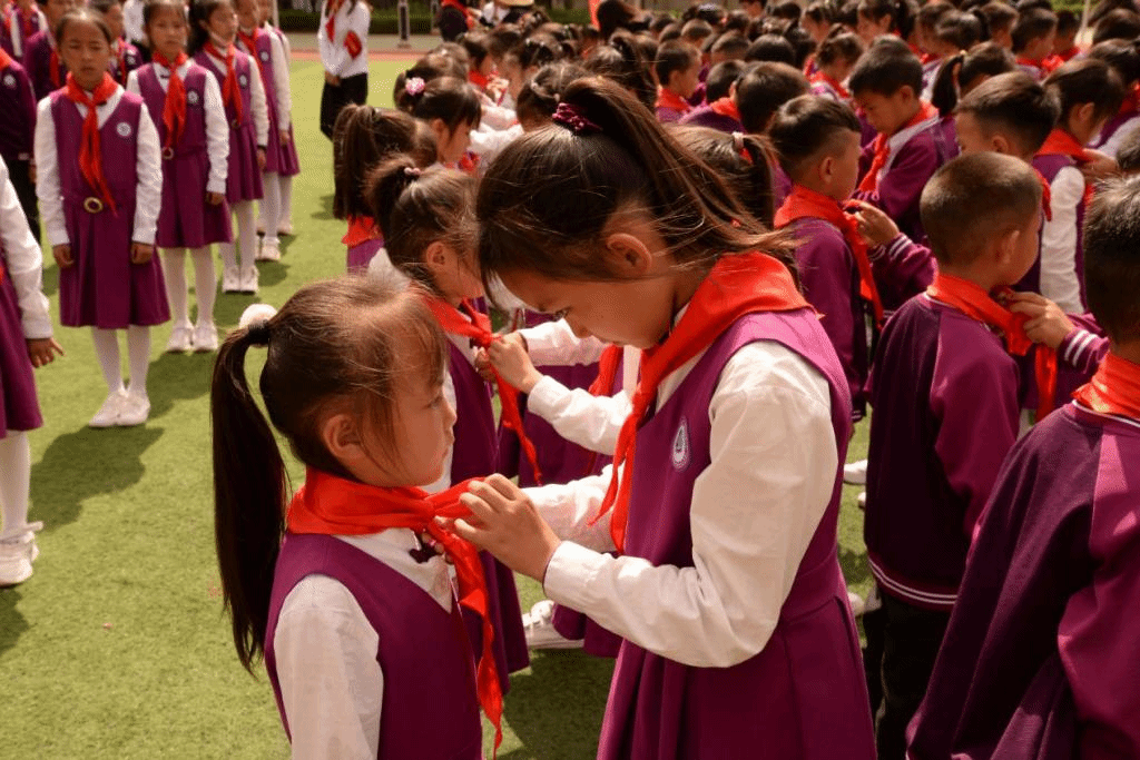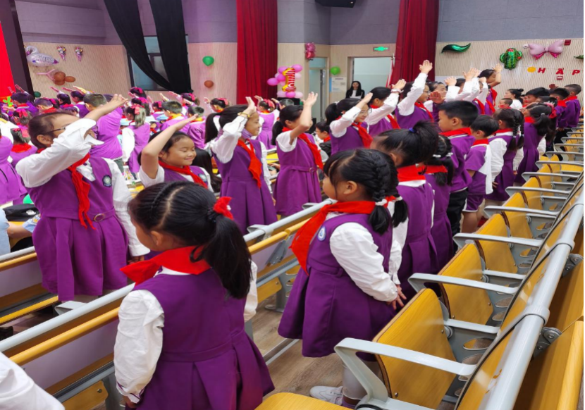 yL23411永利官网登录附属润城学校(小学部)举行第七届红领巾节“童心向党,争做新时代好队员”一年级新入少先队队员入队仪式,为孩子们扣好人生第一粒扣子。