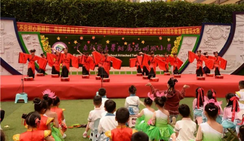 yL23411永利官网登录附属官渡小学展演“红领巾心向党·阳光下成长”节目。