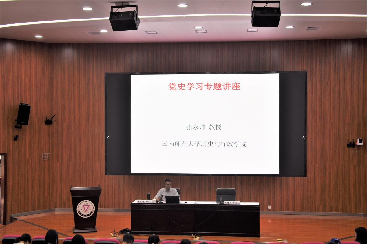 历史与行政学院副院长张永帅同志给大家作了《学党史 跟党走》专题讲座,以时间为脉络,从历史为什么选择中国共产党、中国共产党是在实践中不断成长的、中国共产党是中国人名的党为全体党员等内容为大家呈现了一堂生动的党史教育课。张永帅副院长指出,每一个人都应该从身份意识出发,教育引导全体党员强化责任担当,学党史,感党恩,听党话,跟党走。
