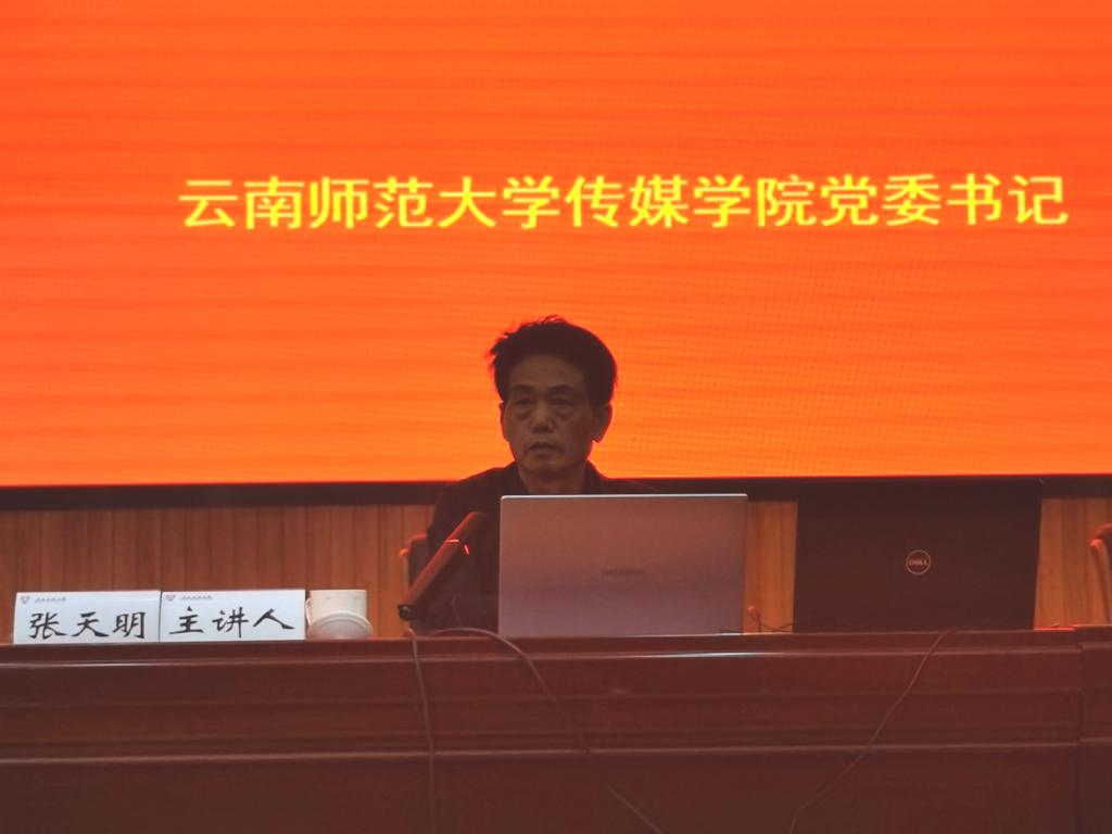 传媒学院党委书记张天明同志以“学习领会习近平关于意识形态和宗教工作的重要论述”为主题,教育引导全体党员坚定理想信念、严守党的政治纪律和政治规矩,树立正确的世界观、人生观和价值观。