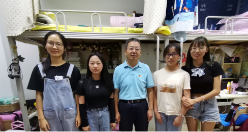 蔡副校长重点走访了625宿舍。走入625宿舍后,蔡副校长称赞了宿舍的精美装饰和干净整洁,同时也对同学们提出了期望和要求:希望同学们把这里当成自己的第二个家,好好呵护它,让这个家每天都干净温馨。蔡副校长关切地询问了每位同学的近况,并留下了学生的联系方式,从学习、生活、个人兴趣,再到学业生涯规划,蔡副校长都和同学们进行了深入的交流和指导,希望同学们在学业方面要做好人生规划。蔡副校长幽默风趣的讲话风格让625宿舍充满了欢声笑语。当蔡副校长看到同学们正在填写入党志愿书时,首先对刚刚成为预备党员的学生表示祝贺,随即鼓励同学们积极进取。蔡副校长用自己的亲身垂范告诉我们“亲其师、信其道”的道理。同学们对校领导走访宿舍表示感谢,也表示会一如既往维护好宿舍环境卫生,遵守宿舍文明公约,共同营造温馨、和谐的宿舍氛围。最后,蔡副校长和625宿舍4位同学合影留念。