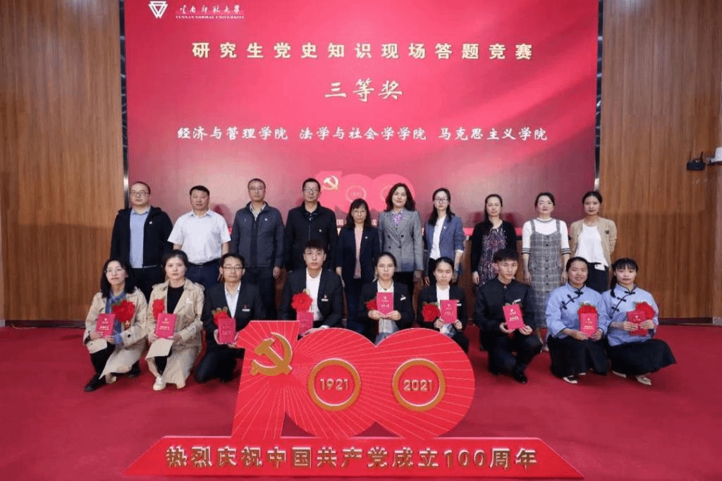 为全面贯彻落实习近平总书记在党史学习教育动员大会的讲话精神,进一步推进党史学习教育往深里走、往实里走,检验研究生党史学习教育的效果,6月10日下午,由研究生处、校团委组织的研究生党史知识答题竞赛暨课外科技学术文体活动颁奖典礼在呈贡校区汇学楼2幢报告举行。校党委副书记李宏,学校学工领导小组成员单位领导,各研究生培养单位书记、副书记、辅导员以及研究生代表500余人参加了本次活动。