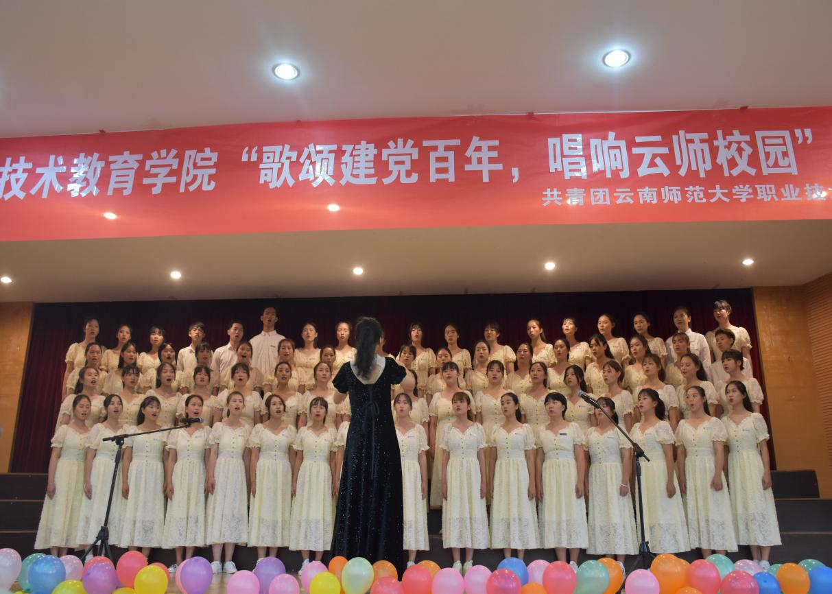 为庆祝中国共产党成立100周年,激发同学们爱党爱国爱校的热情,6月6日下午,职业技术教育学院团委在一二一西南联大校区田家炳教育书院报告厅举办“歌颂建党百年,唱响云师校园”合唱比赛。本次比赛邀请到中国音乐家协会会员(作曲家)唐天尧、云南文化艺术职业学院教学总监王蒙、云南大学昌新国际艺术学院青年教师戴静、云南文化艺术职业学院声乐教师廖今以及学院团委书记刘东东老师担任评委。